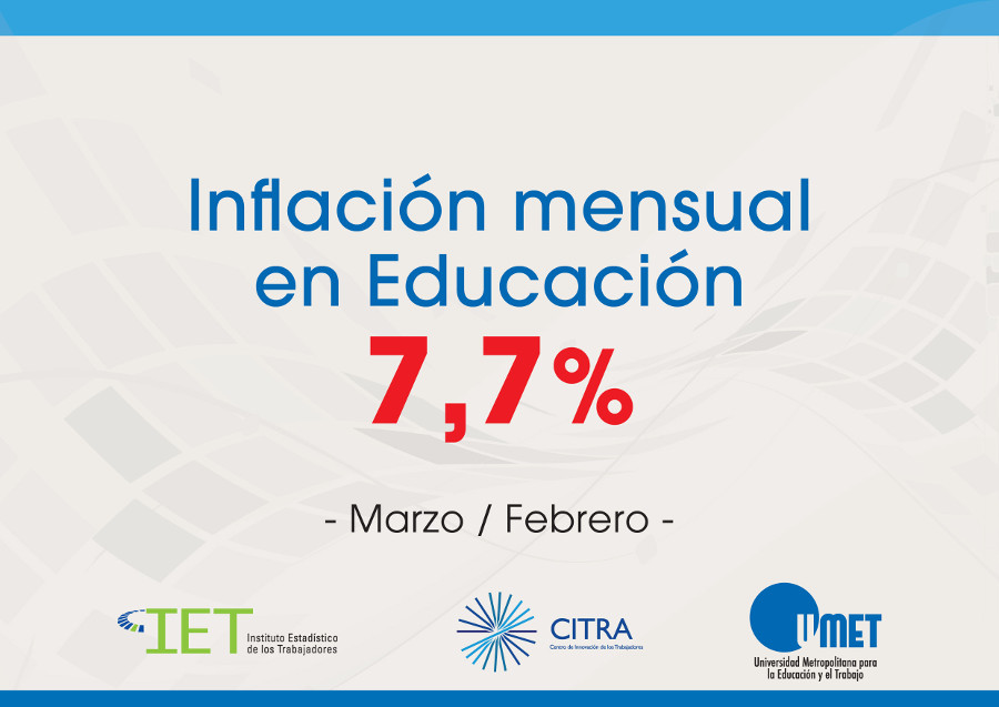 El índice inflacionario consignado por el Instituto Estadístico de los Trabajadores (IET), reflejó en su medición que la inflación mensual de marzo es de 2,1 por ciento.