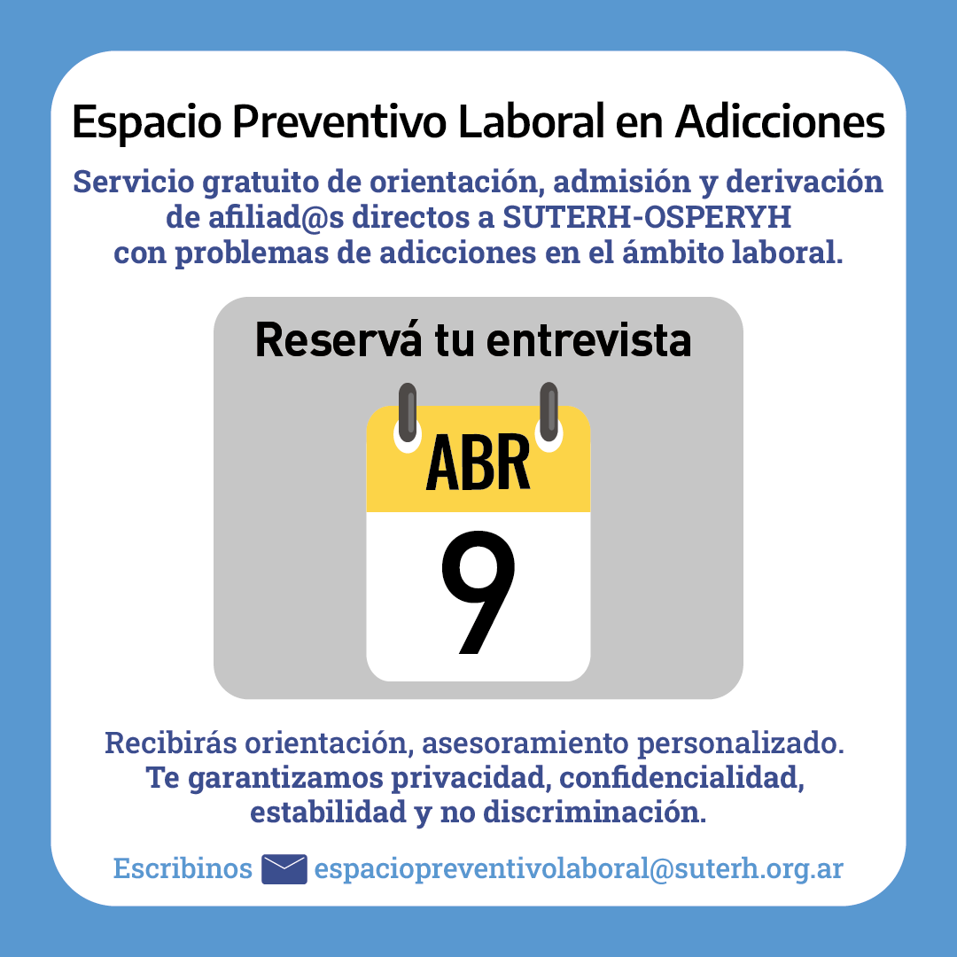 17 Mar Espacio Preventivo Laboral en Adicciones: Turnos en Abril