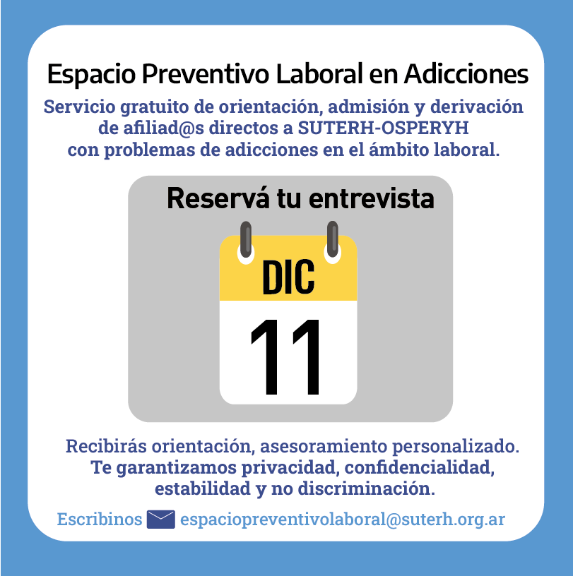 26 Nov Espacio Preventivo Laboral en Adicciones: Turnos en Diciembre