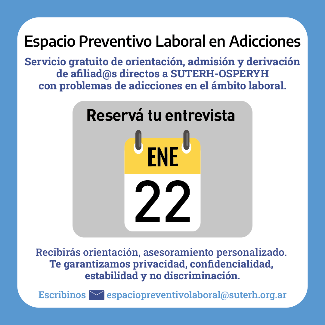 29 Dic Espacio Preventivo Laboral en Adicciones: Turnos en Enero