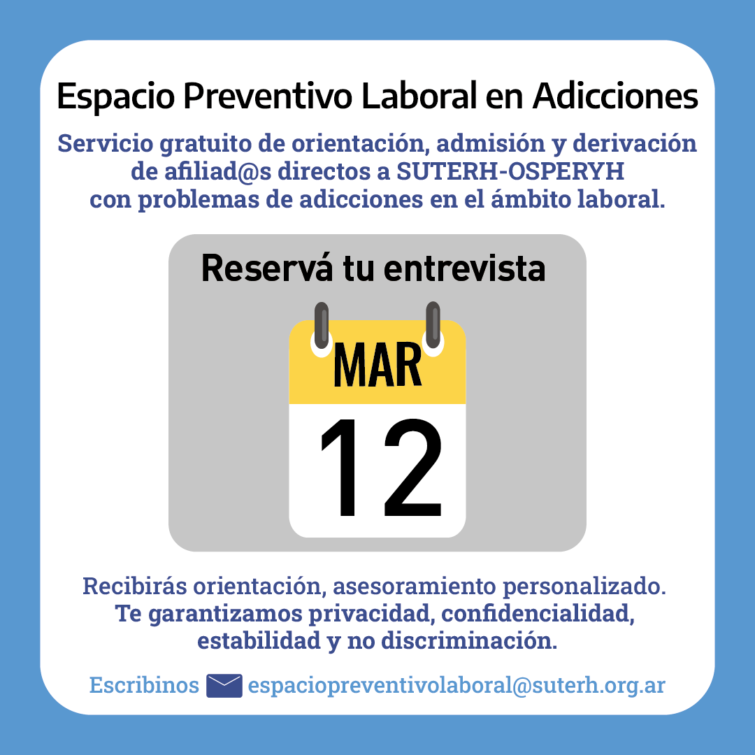 23 Feb Espacio Preventivo Laboral en Adicciones: Turnos en Marzo