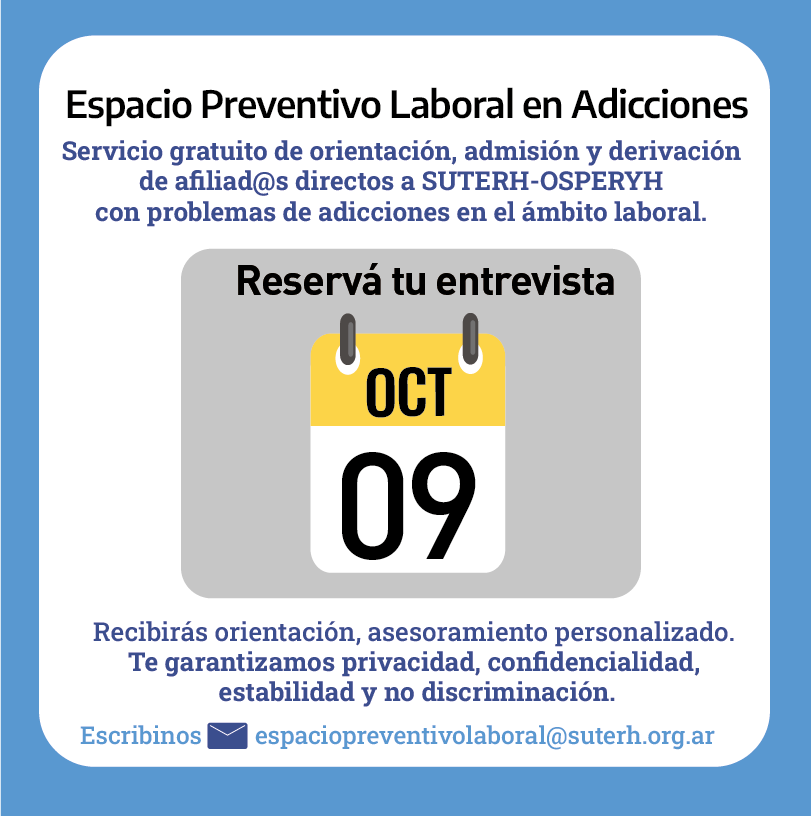 19 Sep Espacio Preventivo Laboral en Adicciones: Turnos en Octubre